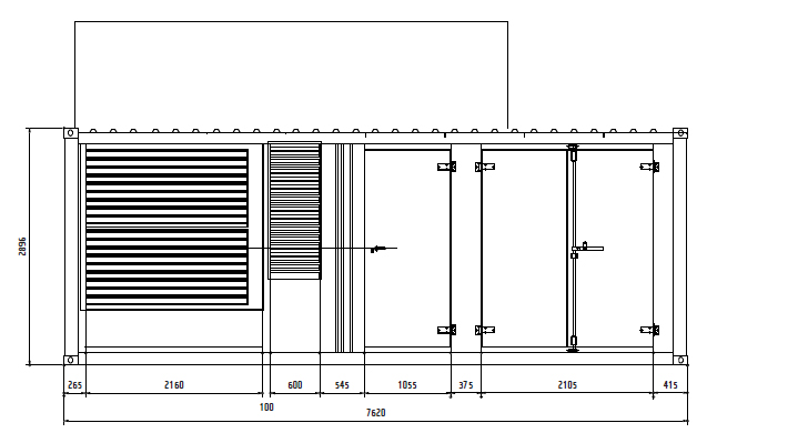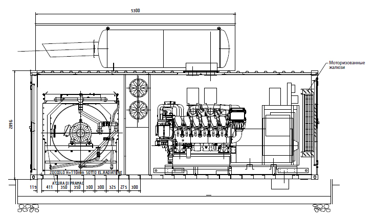 Агрегат был установлен в 25' контейнер, оборудованный моторизованными жалюзи и электоровентиляторами, поддувающими остаточный горячий воздух от двигателя.